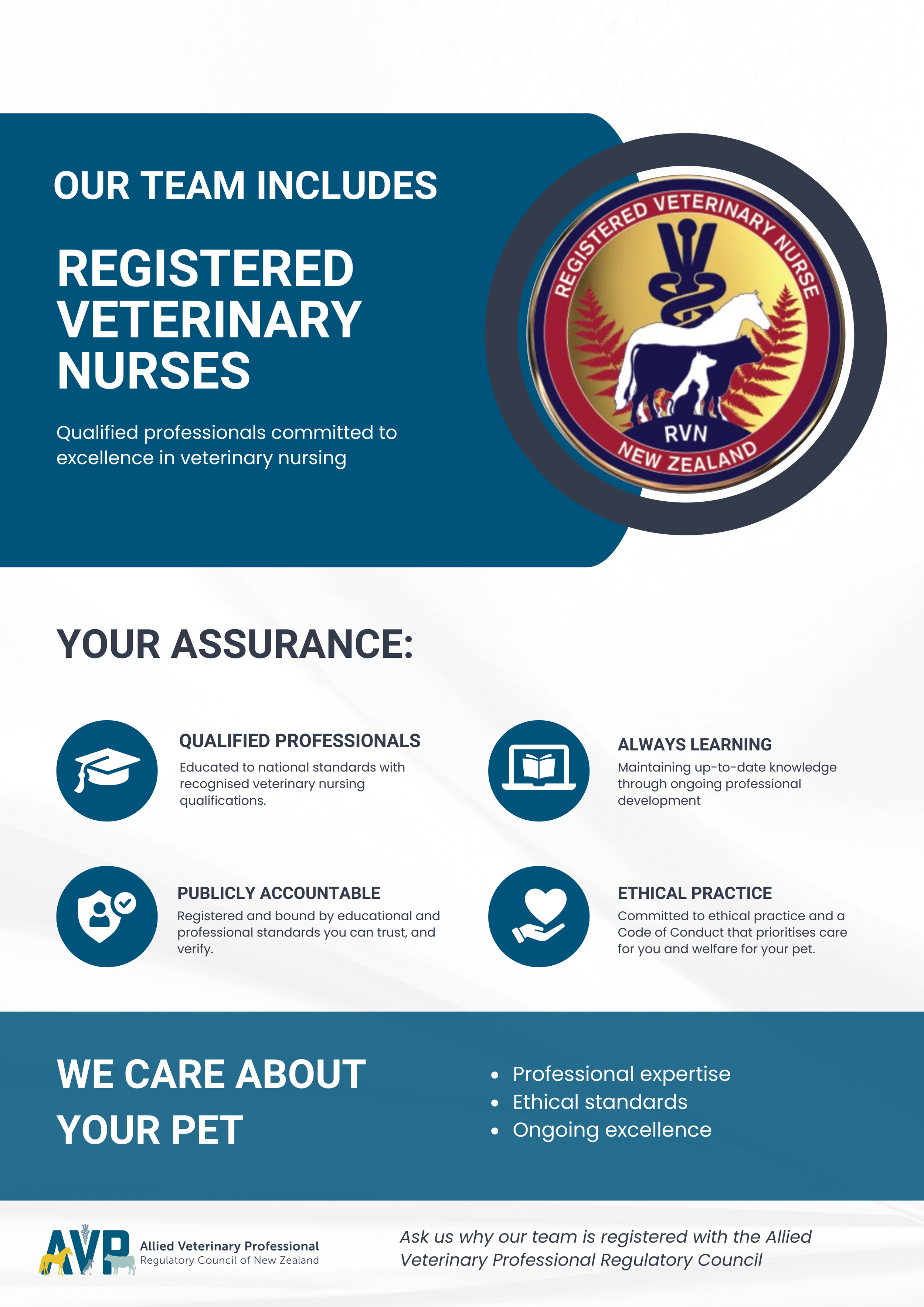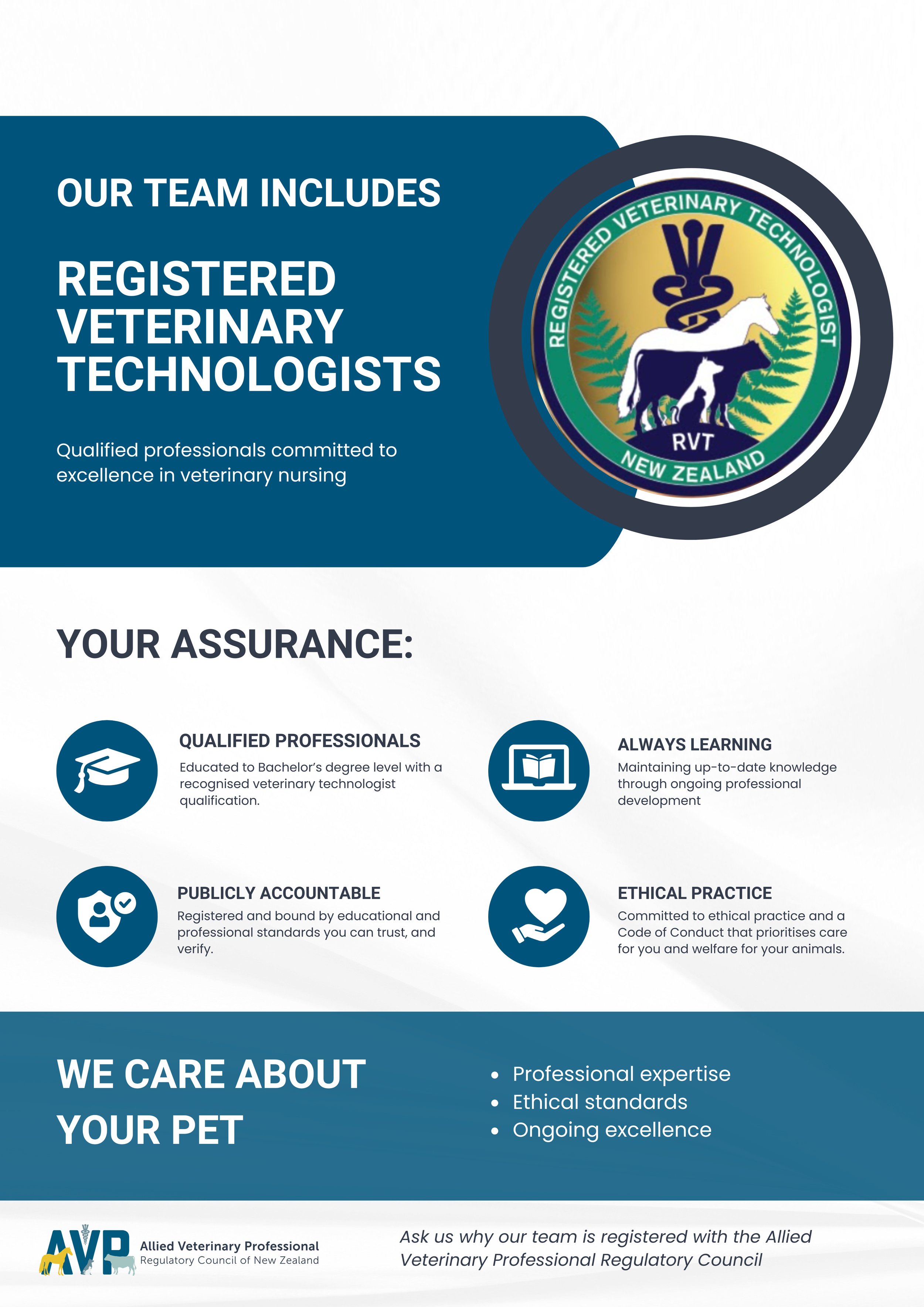 Clinics that employ Registered Veterinary Nurses, Technologists, and Technicians are not only shaping a more stable workforce, they are supporting qualified, accountable professionals who meet national standards for education, clinical currency, and ethical practice.